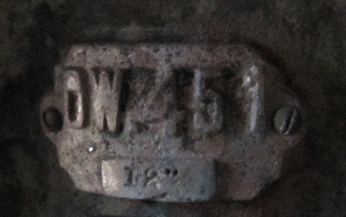No se observa sello, solo algunos números o letras marcados en el quemador. En la base, una placa indicando el tipo de baliza DW (Deep Water), aguas profundas, el número 451, que sigue siendo una incógnita y 12 pulgadas que se refiere a la óptica.